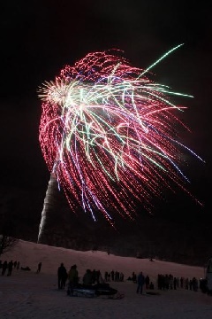 ハチ高原の正月を彩る、恒例の新春花火大会が開催されます。轟音とともに、次から次へと打ち上げられる幻想的な花火が、白銀のゲレンデを鮮やかに彩ります。ハチ高原スキー場には、初心者から上級者まで楽しめるコースがあり、頂上でつながるハチ北とはリフト券が共通のため、日中は、思う存分スキーも満喫できます。