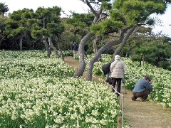 三浦半島最南端の城ヶ島の東に位置する県立城ヶ島公園では、例年1月中旬から2月中旬にかけて、約30万株の八重咲水仙が咲き誇ります。ふくよかな甘い香りを放つ、清らかで可憐なスイセンの花を見ようと、大勢の人で賑わいます。公園内には、展望台やうみのね広場などがあり、散策も楽しめます。