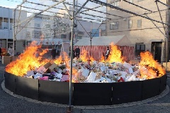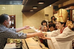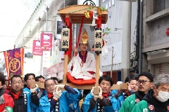 播磨国総社では、毎年1月14日から16日までの3日間にわたり、「初ゑびす祭」が開催されます。14日には、宝船を中心に宝恵駕籠行列が市内を賑やかに練り歩きます。破魔矢や福扇など縁起物の授与もあり、1月14日から16日の正午までは「とんど焼き」が行われます。※行事は状況により変更となる場合あり