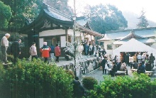 吉備津神社では、新春を祝い「三味線もちつき」が奉納されます。この行事は、半世紀毎の神社の大屋根の葺き替えなどの祝い事の際、地元の氏子たちが三味線や太鼓に合わせてもちつきをしたことに由来します。一時途絶えていたものが復活し、昭和47年(1972年)から披露されています。