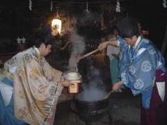 伊太祁曽神社で、厄除けと農作物の豊凶占いの神事が執り行われます。14日の夜に大釜で小豆粥を炊き、その中に沈めた竹筒に残った粥の量で今年の農作物の出来を占い、15日には厄除けの卯杖を神前に供えます。祭典後の午前11時頃より夕方まで、家内安全や厄除の祈祷が行われ、各祈願にあわせて、巫女舞が奉納されます。前夜の神事で炊いた小豆粥(有料)をいただくと、一年間無病息災でいられると伝わります。古いお札やお守りを焚き上げるトンド焼きも行われ、多くの参詣者で賑わいます。