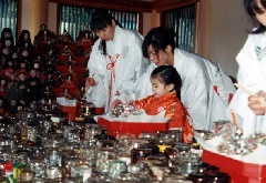 淡嶋神社の祭神、少彦名命が、裁縫の道を初めて伝えた神様であるとのいわれにちなんだ祭りです。一年の間に納められた針が本殿にて祓いを受けた後、針塚に納められ、塩をかけ土に返すことで針の労をねぎらい、裁縫の上達を祈ります。