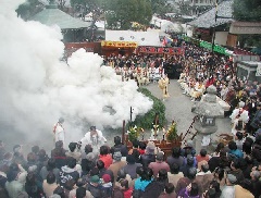 京都の裏鬼門である壬生寺の節分会では、節分の前日と当日に重要無形民俗文化財に指定されている壬生狂言(演目「節分」)が上演されます(無料)。そのほか炮烙奉納(有料)、山伏衆による大護摩祈祷、昇殿特別祈祷など、さまざまな催事が執行されます。