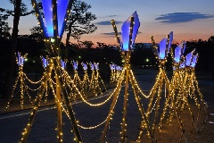奈良を代表する春日大社、興福寺、東大寺を、青のイルミネーションによる“光の回廊”でつなぐ、「なら瑠璃絵」が開催されます。メイン会場は奈良春日野国際フォーラム 甍~I・RA・KA~で、美しい“瑠璃絵”の世界の散策が楽しめます。3つの社寺では夜間特別参拝・拝観が実施され、幻想的な夜の参拝、拝観ができます。手を合わせることで心が洗われ、その小さな祈りがやがて大きな平和への祈りとなって世界に届き、瑠璃色の星がいつまでも美しく輝くようにとの願いを込めて行われます。