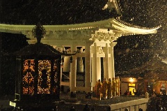 金剛峯寺の除夜の鐘では、「高野四郎」の名で親しまれる梵鐘を僧侶たちがつきます。世界遺産に登録されている「高野山」は、弘法大師空海が修行道場を開いたことからはじまった真言密教の聖地であり、多数の寺院が点在します。※積雪のため、車の場合はチェーンもしくはスタッドレスタイヤが必須