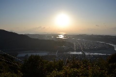 岩国城ロープウエーが、元旦6時30分から早朝運転され、標高約200mの山頂駅周辺で、初日の出を見ることができます。山頂からは、錦帯橋をはじめ、岩国の街並み、遠くは、瀬戸内海の島々までが、眼下に広がる絶景が望めます。