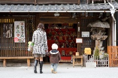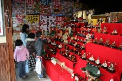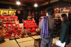足助の古い町並み一帯では、土雛の展示会場となる本町区民館や、古い衣装雛を展示する中馬館などのメイン会場のほか、約100軒の民家や商店にも雛人形が飾られます。明治、大正、昭和、平成と、時代を超えたさまざまな“おひなさん”を、重要伝統的建造物群保存地区の町並みとともに楽しめます。