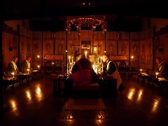 三千院では、毎年2月28日の午前11時より道場すべての戸を閉め、明かりを遮断した状態で暗闇の中に蝋燭を灯し、密壇の上に大宇宙の星空を顕現させる星供法要が営まれます。鎌倉時代より伝承された星に関する密教のお経があり、厄難消除のみならず、開運招福などの願い事が叶うとされます。
