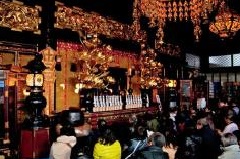 毘沙門天王の総本山、信貴山朝護孫子寺で、節分大法要が行われます。鬼追式(豆まき)は、あばれる赤鬼と青鬼を毘沙門天王が退治し、吉祥天女が福豆を授けるとの逸話にちなんだ神事で、金棒やタイマツを持った鬼が、僧侶と年男に追われ、本堂から各宿坊門前まで逃げ回ります。星祭法要では、すべての人が持つ生まれ年それぞれの星に対して、除災、招福が祈願されます。