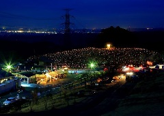 俵山交流館「萌の里」前の馬頭公園に、約3000本のキャンドルが灯され、幻想的な世界が演出されます。キャンドルの数は毎年増え、地元の中学生などが制作した灯篭も並びます。