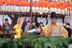 播磨国総社の厄神祭は毎年2月18日と19日に行われ、両日とも午前11時から午後5時までの間、2時間ごとに祈祷焚上神事が執り行われます。午後7時からは釜鳴神事が行われます。厄除けの祈願は、午後8時30分までの受付です。