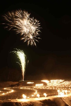 冬の北軽井沢を舞台に、キャンドルアートによる「炎のまつり」が開催されます。新しい年が良い年であることを願って、キャンドルに火が灯され、雪原が幻想的な雰囲気に包まれます。18時30分からは花火も打ち上げられます。