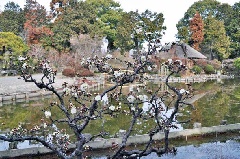 梅宮大社の神木とされる梅の花は、例年2月中旬から咲き始め、遅咲としては3月中旬の山桜とともに咲く、呉服(くれは)枝垂、白牡丹、盤上の梅があります。変わり種は、1本で紅白を咲き分ける「想いのまま」、枝が金色の「金枝梅」があり、見どころとなっています。現在は約35種350本が境内全域に植えられ、特に北、西神苑に集中します。花の見頃にあわせて、甘酒祭(毎年2月11日)、梅産祭(3月第1日曜)が開催されます。