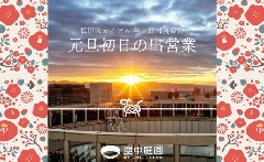 梅田のランドマーク、新梅田シティの「梅田スカイビル・空中庭園展望台」で、元日早朝に特別営業が行われます(事前にWEBチケットの購入が必要、数量限定)。生駒山系から昇る初日の出が、しだいに大阪の街をあたたかなオレンジ色に染めてゆく、感動的な光景を観賞できます。新年の始まりを“地上173mの特等席”で、大切な人とともに過ごすことができます。振る舞い酒のサービスなどもあります。※詳細はホームページ参照