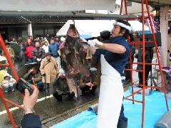 例年12月になると旬を迎えるあんこうを、存分に楽しめる「糸魚川荒波あんこう祭り」が、3週にわたり、糸魚川、青海、能生の特設会場で行われます。名物の大鍋あんこう汁をはじめ、地元の特産品などが多数出店されるほか、大迫力のあんこうつるし切り実演も行われます。“荒波あんこう”とは、日本海の荒波で育ち、糸魚川の漁港で水揚げされたばかりの、10kg以上の大物級キアンコウのことをいいます。※内容が変更となる場合があります。