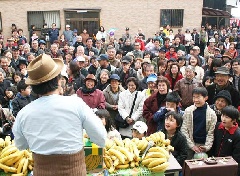 鹿児島県内3大市の一つ「川辺二日市」では、かわなべ開運夢通り商店街の両側(広瀬橋交差点から川辺高校まで)に約400店舗がずらりと並び、例年17万から18万の人出で賑わいます。南薩に春を告げる風物詩として親しまれ、特産品の販売をはじめ、竹製品、陶器類、川辺仏壇の展示即売や、植木市、九州骨董市、フリーマーケットのほか、チンドン行列、バナナの叩き売り、猿回し、バルーンアートなどの大道芸もあり、一日中楽しめます。
