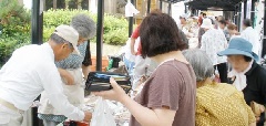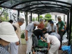 アミティ丹後で、毎週日曜に朝市が開催されます。水産物をはじめ、野菜や果物、花卉類のほか、加工食品や惣菜も販売されます。