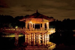 春日大社(一之鳥居)、東大寺(大仏殿・南大門)、奈良国立博物館(なら仏像館・仏教美術資料研究センター)、猿沢池、浮見堂、平城宮跡(第一次大極殿・朱雀門)、薬師寺(東塔・西塔)が揃ってライトアップされます。昼間とはまた違う、いにしえの奈良の都を彷彿させる風景に魅了されます。