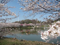 花博記念公園鶴見緑地の広大な園地には、カワヅザクラ、ヨウコウ、ソメイヨシノ、ヤエザクラなど、早咲きから遅咲きまで約10品種約1100本の桜が植えられています。大池や日本庭園内の「四季の池」周辺、バーベキュー場南側、パークゴルフ場Cコース沿いなど、園内各所で咲き誇る桜を楽しめます。