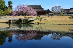 岡山後楽園にはソメイヨシノを中心に外園を含め約280本の桜があり、例年3月下旬から4月上旬にかけて見頃を迎えます。広々とした大名庭園を桜が彩り、ぜいたくな春景色が楽しめます。花葉の池に架かる栄唱橋のたもとでは、一本桜のヤエベニシダレが美しい姿を見せます。
