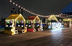 デックス東京ビーチでは、一年を通して楽しめる「お台場イルミネーション“YAKEI”」の点灯が行われています。東京湾の夜景とレインボーブリッジを背景に、高さ約20m、幅約10mの生木を使用した台場メモリアルツリーや、シーサイドテラスのメインオブジェ「ODAIBA」を中心とした光り輝く空間が広がり、芸術と癒しが一体となった居心地のよいアートスポットとなっています。