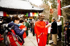 宝積寺で節分にあたり、「星供結願護摩法要」が執り行われます。大導師、福男、福女、稚児、七福神が5匹の鬼を追い払う「追灘式」があり、その後、豆をまいて福を願います。
