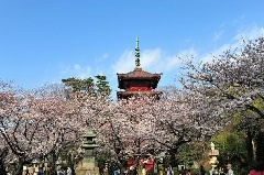 国指定重要文化財の五重塔や祖師堂、法華堂がある中山法華経寺の桜が、見頃を迎えます。境内には、約50本のソメイヨシノが植えられており、満開時には、歴史的建造物に華やぎを添えます。