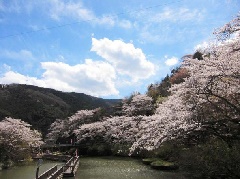 方広寺入り口の奥山公園とその周辺で、ソメイヨシノ約1000本あまりが咲き誇ります。池に架けられた浮き桟橋から見る桜は美しく、見頃に合わせて夜にはライトアップも行われます。3月29日には、奥山公園ポケットパークにて「奥山桜まつり」が催されます。