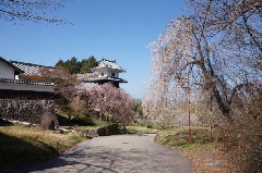 岩村城太鼓櫓の枝垂れ桜
