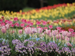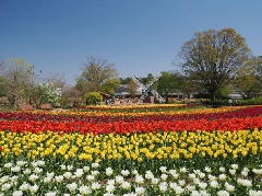 カラフルな花々が春の訪れを告げる「チューリップまつり」が、兵庫県立フラワーセンターで開催されます。約300品種14万球の色とりどりのチューリップが、例年4月上旬から中旬にかけて見頃となります。自然の松林に囲まれた園内は、中央に満々と水をたたえた亀ノ倉池、南国ムードあふれる大温室、大小さまざまな花壇や樹木園で構成されており、散策が楽しめます。