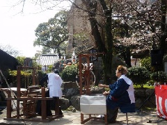蚕が日本で初めてこの地に渡来したことを示す記念碑がある忌宮神社で、「蚕種祭」が開催されます。献茶をはじめ、献歌、生糸紡ぎと機織り奉納が行われるほか、煎茶とまゆ菓子、季節粥の接待もあります。昭和8年(1933年)に、養蚕関係者によって「蚕種渡来の地」の記念碑が建立されたことにちなんで毎年開催され、かつて養蚕が日本の庶民の暮らしをいかに支えたかを回顧する意味が込められています。