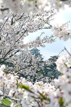 安土・桃山様式の面影を残す島原城には、約250本のソメイヨシノが植栽されており、例年3月下旬になると見頃を迎えます。青空と白い天守閣を背景に桜が咲き誇る様子は壮麗で、風情があります。島原城は、江戸時代初期に松倉豊後守重政(まつくらぶんごのかみしげまさ)によって築かれ、以来250年にわたり、島原藩政の中心として栄えました。