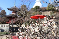 よみうりランド遊園地隣接のフラワーパーク「HANA・BIYORI」には、寒紅梅、白加賀、紅千鳥など約200本の梅が植栽されています。見頃に合わせて「梅まつり」が開催され、期間中は稲城市、川崎市、多摩市、調布市在住の65歳以上の方と、一緒に入園する家族の入園料が半額の400円となります。HANA・BIYORI内にある日帰り温泉施設「花景の湯」では、期間中の平日、同4市在住の65歳以上の方の入館料が1500円となります(通常:大人平日2300円)。※チケットの購入方法など、詳細はホームページ参照