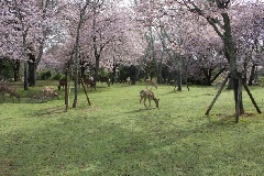 「日本さくら名所100選」に選定されている奈良公園では、例年3月下旬になると、春日野園地や浮見堂の周辺など、多くの場所で見事な桜が咲き誇ります。早咲きの桜から遅咲きの「奈良八重桜」まで、数種類が次々と咲くため、長期にわたり楽しむことができます。奈良公園一帯は、春日大社や興福寺、東大寺といった世界文化遺産があり、奈良を代表する観光スポットのひとつとなっています。