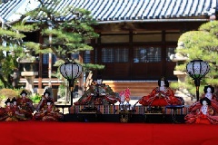 江戸時代からの古い町並みが残る富田林寺内町界隈(駅南側の各商店会から寺内町にかけてのエリア一帯)で、「じないまち雛めぐり」が催されます。白壁、本瓦、虫籠窓の美しい寺内町を中心に、民家や商店にお雛様が飾られ、菜の花とともに春の節句を祝います。期間中は、町内の公共施設で連携イベントなどが行われます。