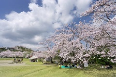 霧島連山を一望できる絶景の地であり、鹿児島県内有数の花見の名所でもある丸岡公園では、例年3月下旬になると、ソメイヨシノ約2000本が咲き誇ります。樹齢100年以上の枝垂れ桜も見応えがあります。公園内には、バンガローやゴーカートなどもあり、それぞれの目的にあわせた楽しみ方ができます。