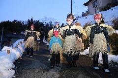 能登地方に藩政期から伝わるとされる民俗行事「アマメハギ」は、毎年2月3日に行われ、能登に春をもたらす行事として親しまれています。アマメとは、囲炉裏端に長時間いるとできる火ダコのことで、前垂(まえだれ)と蓑をつけ、フカグツを履いた子どもたちが、手に包丁(模造)やサイケ(竹で作った筒のようなもの)を持って鬼に扮し、夕暮れ時に「アマメー、アマメができた者はいないか」と叫びながら、なまけ癖のついた人を戒めながら各家をまわります。国指定重要無形民俗文化財。2018年に、ユネスコ無形文化遺産登録された「来訪神 仮面・仮装の神々」10行事のひとつです。