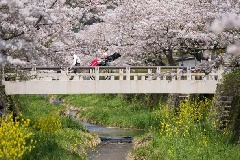 古い町並みが残る山口の市街地を、穏やかに流れる一の坂川の桜が見頃を迎えます。一の坂川は、大内弘世が京都を模して、山口の街づくりを行った際、鴨川に見立てたとされる川です。両岸にはソメイヨシノ約200本が並び、例年3月下旬から4月上旬の開花時期にはライトアップが施されます。周辺には古い町家を改装したお店が点在し、お花見がてらの散策も楽しめます。