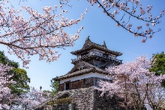 丸岡城を有する霞ヶ城公園のソメイヨシノが見頃を迎える時期にあわせて、「丸岡城桜まつり」が開催されます。丸岡城と桜がライトアップされるほか、4月4日と5日のイベント日には、城下市などのイベントが行われます。「日本さくら名所100選」に選定されており、夜間は、桜の花に浮かび上がる丸岡城天守へのプロジェクションマッピングも楽しめます。