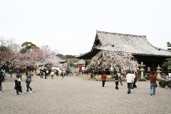 桜が満開の季節に、境内に特設舞台が設けられ、「安珍(あんちん)と清姫(きよひめ)」の伝説にちなんだ「道成寺物(どうじょうじもの)」と呼ばれる芸能の公演が行われます。「道成寺物」には、能、人形浄瑠璃、歌舞伎、日本舞踊、琉球舞踊、邦楽など、多くの作品があり、分野と出演者が毎年入れ替わりながら、歌舞伎俳優から地元の子ども舞踊教室までが、その芸を披露します。地元では「一生に一度は道成寺で道成寺物を奉納したい」と言われるほど伝統があります。※演目や料金は道成寺ホームページでご確認ください。