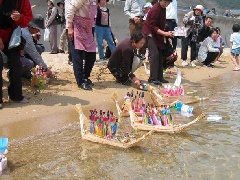 9:00~/流し雛づくり(笠岡諸島開発総合センター)、12:00頃~/流し雛を流す(北木島大浦海岸) |
