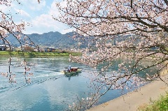 山県有朋や桂太郎らが寄贈した橋本川沿い約2kmにわたる桜並木は、明治期より萩市の花見の名所として知られ、例年3月下旬になると見頃を迎えます。開花時期にあわせて、萩八景遊覧船「桜観賞コース」の特別運航も行われ、土手に咲く美しい桜並木を船上から眺めることができます。古木と若木が織り成す並木の桜が水面に映り、行楽客の目を楽しませます。