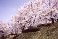 草野の古い町並みの山手にある発心公園は、歴代藩主の花見の場所であったとされるほど歴史のある名所です。例年3月下旬から4月上旬に、ソメイヨシノ約140本、ヤエザクラやヤマザクラなど約30本の桜が咲き誇り、花見客で賑わいます。夏目漱石の「松をもて囲いし谷の桜かな」の句碑があり、その美しさを称えます。