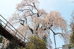 林昌寺境内の観音堂と鐘楼の間にあるシダレザクラの古木が、例年3月下旬から4月上旬にかけて、見事な花を咲かせます。目通り約3.8m、樹高約16mもあり、中之条町の天然記念物に指定されています。古刹に春の訪れを告げるかのような、凛とした風情が漂います。