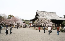 和歌山県最古の寺、道成寺では、例年3月中旬から4月上旬にかけて、桜が見頃を迎えます。本堂の周りのシダレザクラをはじめ、エドヒガンやソメイヨシノなど、約300本が咲き誇り、境内は華やかな雰囲気に包まれます。道成寺は、大宝元年(701年)に創建され、安珍と清姫の物語を描いた「道成寺縁起」の舞台として知られています。毎年4月27日には、安珍・清姫の物語を再現した行列「道成寺会式 ジャンジャカ踊り」が、行われます。