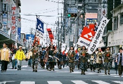 戦国時代、五代にわたって理想の国づくりを目指した戦国大名、小田原北条氏をたたえる、地域最大のお祭りが開催されます。銅門広場特設ステージでの出陣式のほか、歴代小田原城主をはじめ、武者隊や姫隊を中心とした武者行列と、市内の中学校や高校などの吹奏楽部やバンドチーム、神輿などのまち衆隊も参加し、総勢1600人が勇壮に練り歩きます。鉄砲衆による発砲の演技や、風魔忍者によるパフォーマンスも必見です。