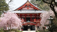 那谷寺では、例年4月上旬になると桜が開花します。朱色が鮮やかな金堂華王殿を背景にシダレザクラが咲き誇る様子は、一見の価値があります。桜以外にも春の息吹を感じられる艶やかな花々が咲き誇り、神仏たちの来迎を讃嘆する散華のような風景が楽しめます。那谷寺は平安時代、花山法皇が参詣した際に、西国33か所の霊場に勝るところとされ、第1番の那智山の「那」と33番の谷汲山の「谷」をとって那谷寺と名づけられたと伝わります。境内には国指定名勝「奇岩遊仙境」をはじめ、さまざまな重要文化財があります。