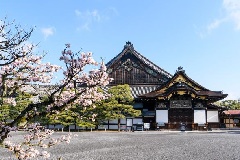 二条城内には、早咲きから遅咲きまで約50品種300本の桜があり、約1か月間にわたって桜を観賞することができます。桜まつり期間中は、スタンプラリー、京の名産品展、文化イベントなどが行われます。夜のライトアップイベント「二条城 2026 SAKURA NIGHTS」では、国宝 二の丸御殿の夜間特別観覧、イマーシブシアター「城劇」、歴史的建造物や桜のライトアップなど、特別な体験を楽しめます。※通常観覧とライトアップは入替制。※ライトアップの観覧ルートは昼間とは異なります。