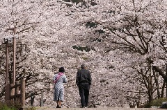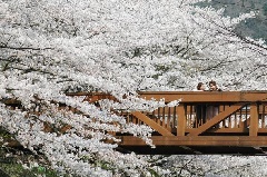 山々に囲まれた自然豊かな亀岡市には、七谷川(和らぎの道)をはじめ、南郷公園、亀岡運動公園など、さくらの名所が数多くあります。例年3月下旬から4月上旬にかけて桜が咲き誇る時期を「亀岡さくらウィーク」と題し、さまざまなイベントが開催されます。美味しいものが集まる「さくらマルシェ」や、幻想的な夜桜が観賞できるライトアップなどが行われ、大勢の花見客で賑わいます。