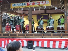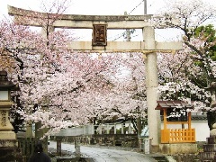 桜が咲き誇る向日神社の境内で、見頃にあわせて「桜まつり」が開催されます。さまざまな催しが行われ、多くの露店も立ち並び、花見客で賑わいます。初日の夕刻からは篝火が灯されて、夜桜観賞もできます。